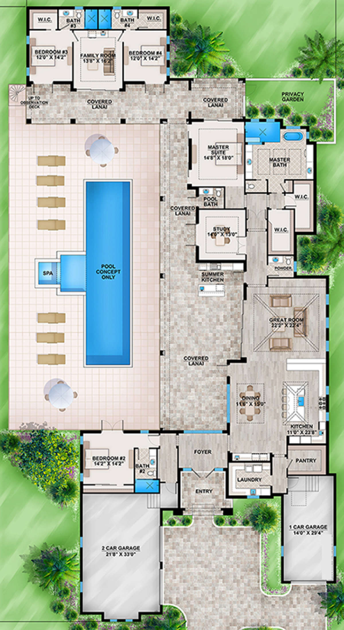 3800 Sq Ft Mediterranean House Floor Plan 4 Bed 4 Bath